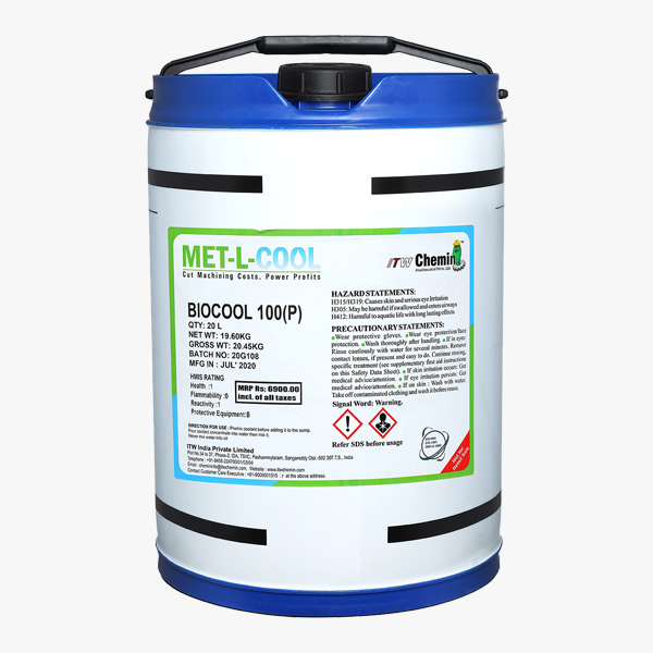 Biocool 100P is high performance environment- friendly, long life semi-synthetic metal working fluid, suitable for all moderate machining and grinding operations on all ferrous and its alloy metals. Formulated with high performance extreme pressure additives, corrosion inhibitor package and biocides, BIO COOL -100P is designed with high base oil contents to have good lubricity, residual oil on machine beds and quick separation of tramp oil in coolant tanks.