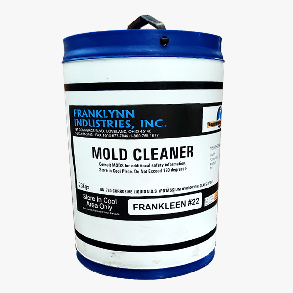 Franklynn 22 mold cleaner is designed to clean urethane residue, thermoset elastomers, phenolic/polyester/vinyl ester resins, waxes, soaps, silicone fluids or polymers and polymeric release agents from metal and composite tooling. Frankleen 22 can be applied onto hot or cold molds via brushing or wiping.